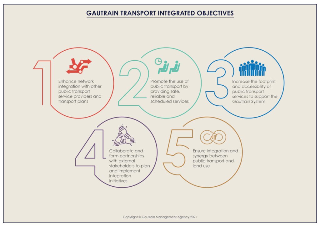 The Agency endeavours to live its purpose: to transform spaces, people and the economy through mobility. Part of the transformation is about enhancing the integration of the Gautrain System with other public transport services within the Gauteng province. An integrated public transport network promotes the use of public transport and supports the economic activities of commuters and the community at large.