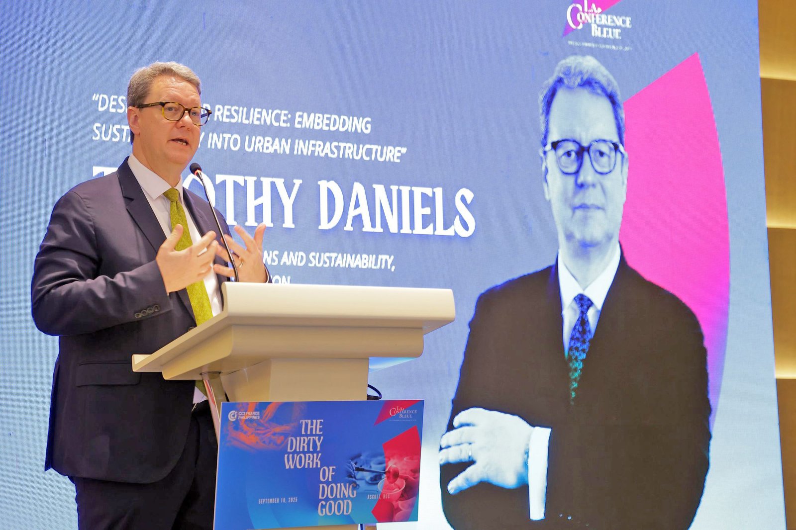 SM Investments Corp., the parent company of the SM group, cited its practical approach to sustainability at The Dirty Work of Doing Good, a sustainability conference organized by the French Chamber of Commerce and Industry in the Philippines.
